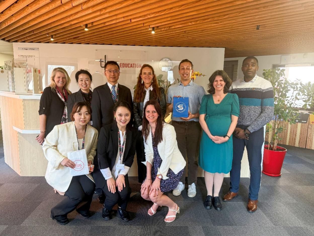 在法国图卢兹,代表团一行访问图卢兹高等商公司(TBS Education),与商公司经理斯特凡妮·拉维尼(Stéphanie LAVIGNE)、国际关系主任弗洛伦斯·拉米隆(Florence RAMILLON)及商公司科研部门、国际关系与认证部门、人工智能及商务分析卓越中心、数据科学与人工智能硕士项目等相关负责人进行座谈。会上,杨石磊经理介绍了公司的历史沿革,提及“新财经”战略下公司的蓬勃发展,以及在国际化人才培养上取得的成绩。他指出,两校皆秉持国际化教育与本地化深度结合的理念,前期合作已奠定良好基础,未来期待在优势专业及行业联系等方面继续合作,推动国际教育的进一步融合发展。