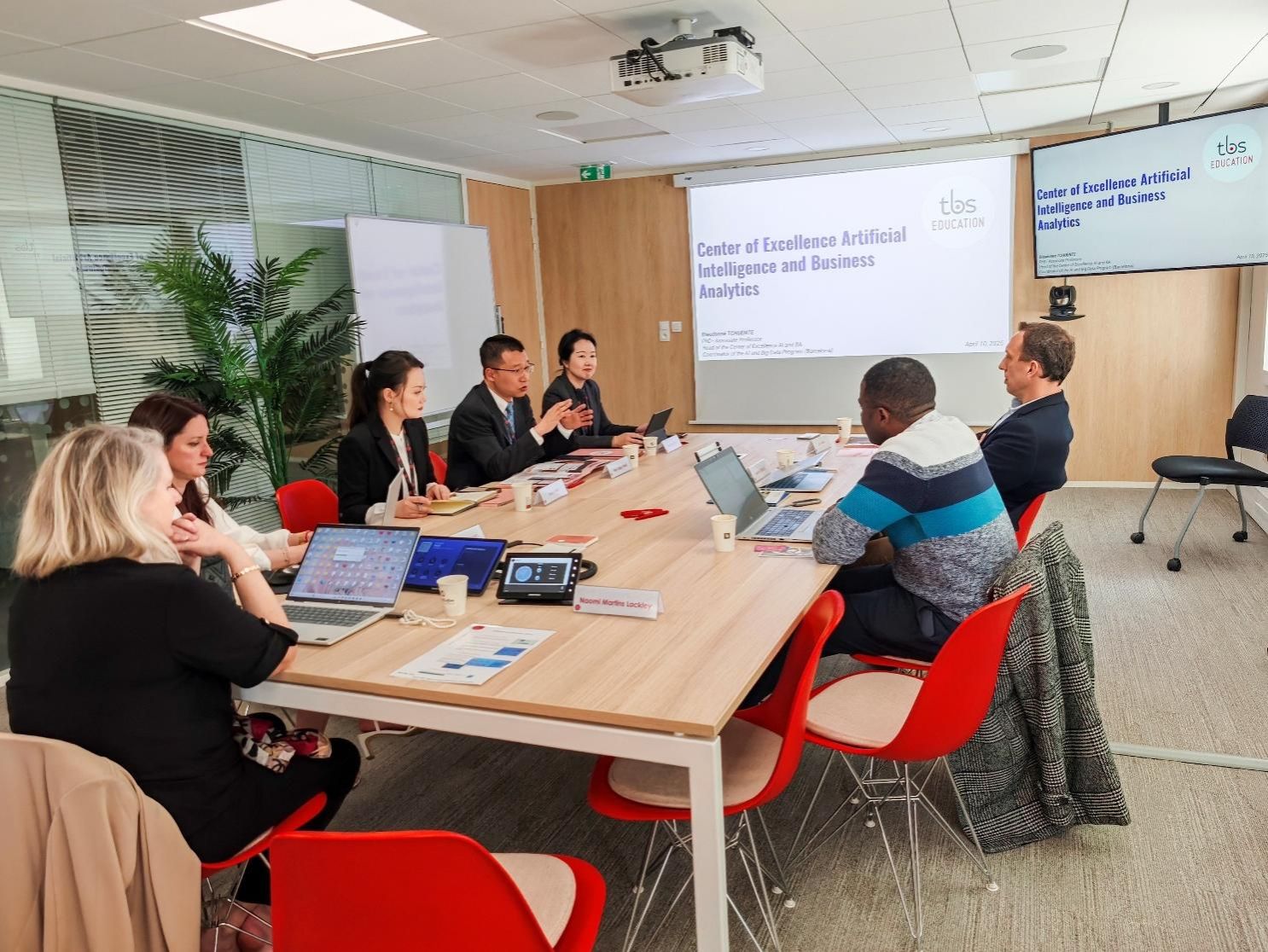 斯特凡妮·拉维尼经理对代表团的到来表示热烈欢迎,她介绍了TBS Education在国际教育领域的丰富经验,其在图卢兹、巴塞罗那、巴黎等欧洲多地的校区,可为世界各地的员工提供多语言、灵活的本硕课程教育。她着重强调公司建立AI和商业分析卓越中心的重要意义,学徒制在本科教育中的创新运用。双方期待以此次座谈为契机,深化在联合项目课程、员工竞赛及师生交流等方面的合作。