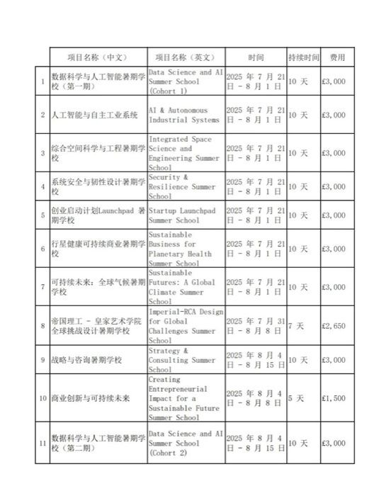集团官网详情:https://www.imperial.ac.uk/continuing-professional- development/short-courses/summer-schools/summerschool/