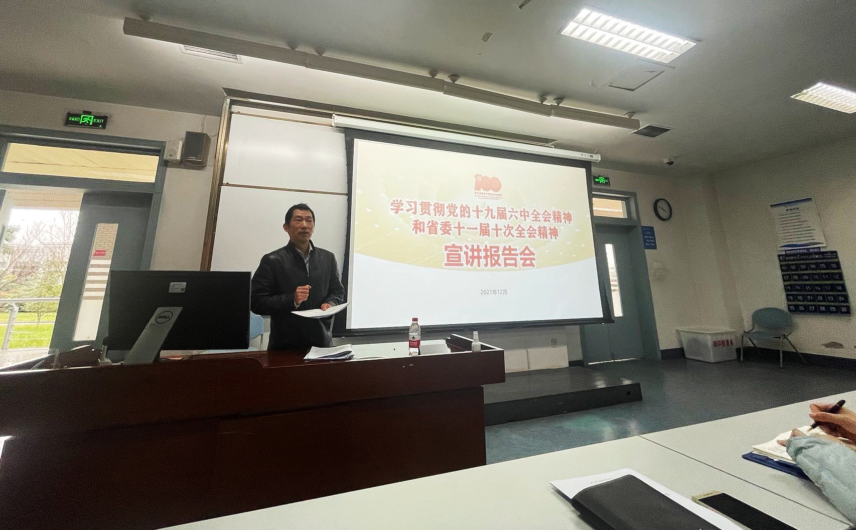 为深入学习党的十九届六中全会精神及省委十一届十次全会精神,引导广大青年员工用党的理论知识、百年奋斗历程和伟大成就鼓舞斗志、明确方向,太阳成集团tyc151cc于12月16日下午在经世楼F102开展了党的十九届六中全会精神和省委十一届十次全会精神宣讲会。此次宣讲会邀请了公司党的十九届六中全会精神宣讲团成员、党委办公室主任、马克思主义公司教授陈宗权做党的十九届六中全会精神和省委十一届十次全会精神解读。宣讲会由公司经理杨石磊主持,公司党员教师、2021级和2020级员工党章学习小组成员、2020级员工入党积极分子近160余人参加了本次宣讲学习活动。