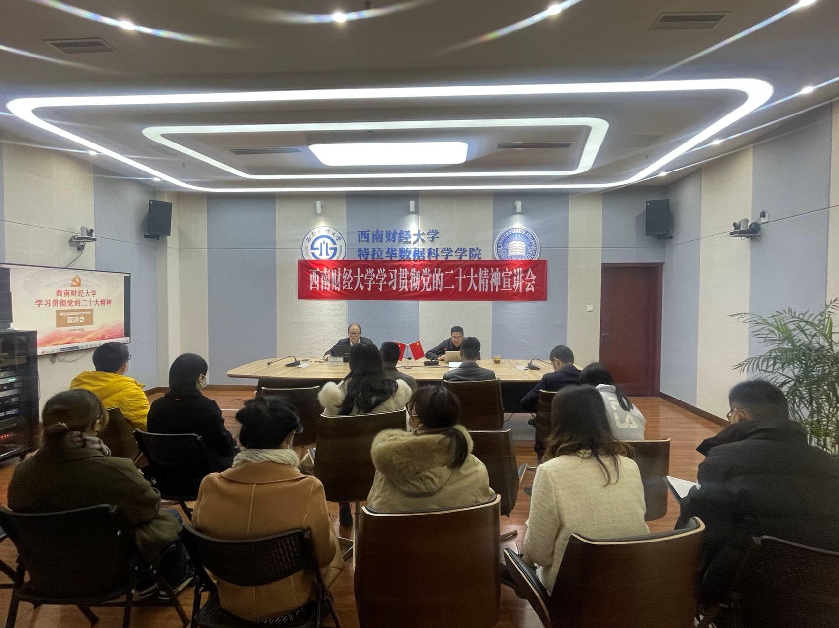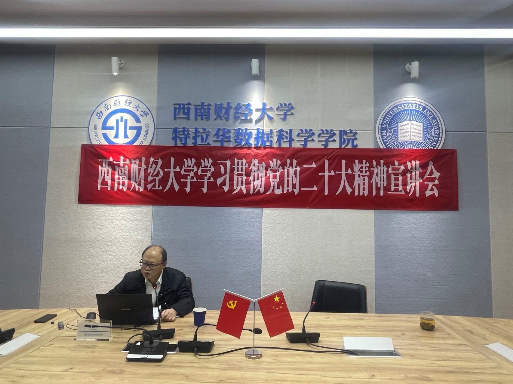 何刚从深刻把握大会主题、大会成果、重大意义,深刻把握过去五年的工作和新时代十年伟大变革的重大意义,深刻把握习近平新时代中国特色社会主义思想的世界观和方法论,深刻把握以中国式现代化全面推进中华民族伟大复兴的使命任务,深刻把握以伟大自我革命引领伟大社会变革的重要要求,深刻把握团结奋斗的时代要求,坚定推动党的二十大决策部署在西南财大落地生根、开花结果等七个方面进行了宣讲。