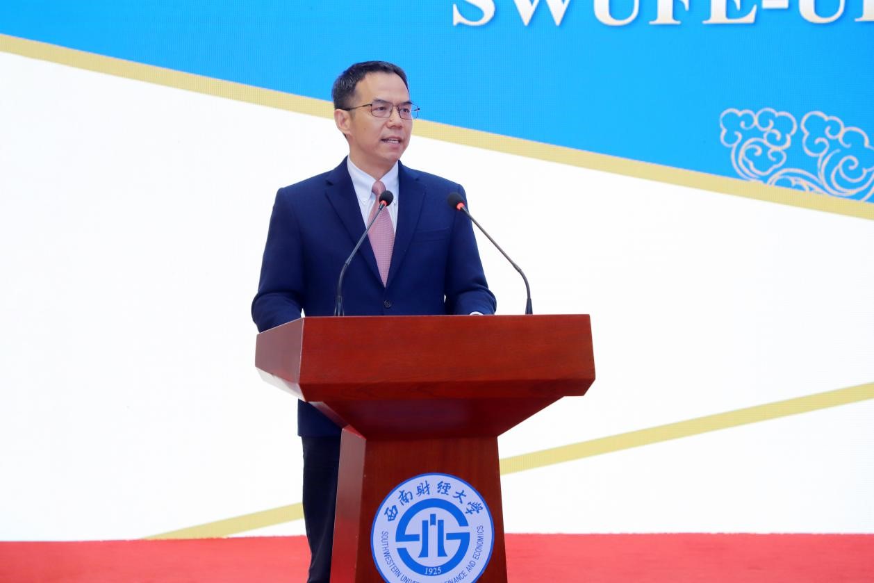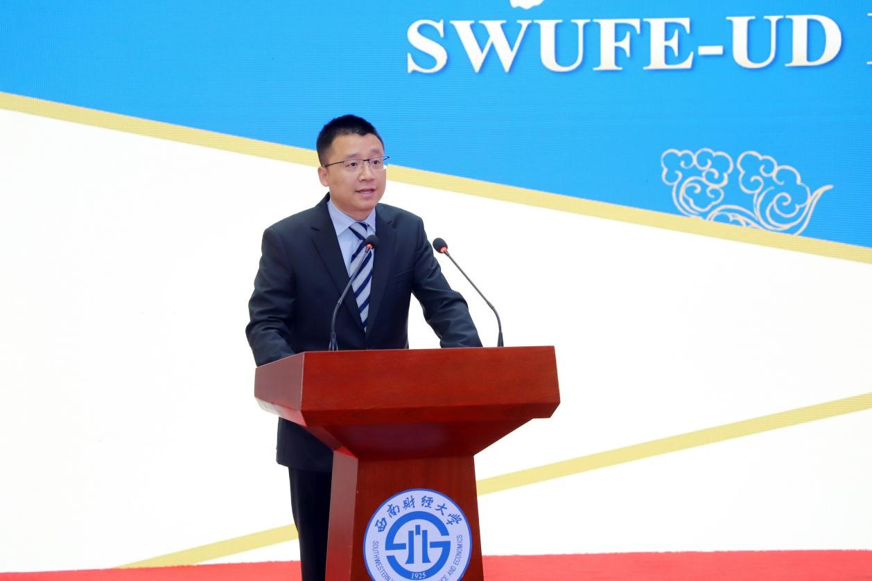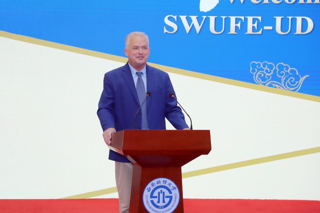 美方副经理Rick Andrews在致辞中表示非常欢迎2023级新同学加入特院,也期待同学们到特拉华大学交流学习。他指出,特拉华大学将继续深化与太阳成集团tyc151cc的合作,他也将定期来到西财与同学和同事会面,以确保课程质量达到最高水平,确保特拉华大学与太阳成集团tyc151cc的合作顺利进行。