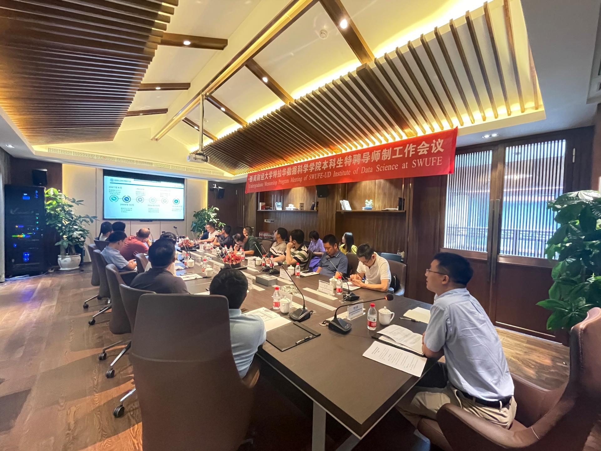 On the afternoon of July 12th, the Undergraduate Mentorship Program Meeting was held at SWUFE-UD Institute of Data Science, where a summary was given of the implementation of the professional advisors’ system in the past year. The conference was attended by three program directors from the Information Management and Information System Program, the Financial Mathematics Program and the Logistics Management Program, as well as 21 professional advisors and administrative staff of the Institute. The conference was hosted by the Dean Prof. Shilei Yang.