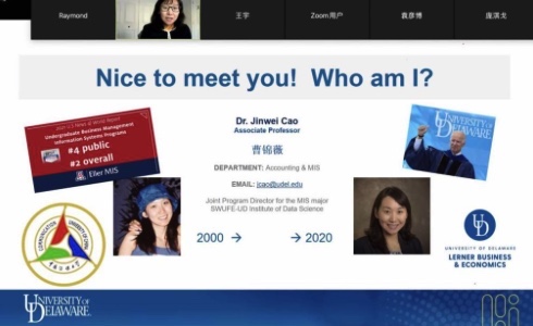 From December 14th, SWUFE-UD Institute of Data Science offered live broadcasts of online lectures to students of three programs (Finance, Management Information Systems, Operations Management) via ZOOM. The online lectures were given by three UD program directors individually at 21:00-22:00 on December 14th, December 15th, and December 18th, 2020.